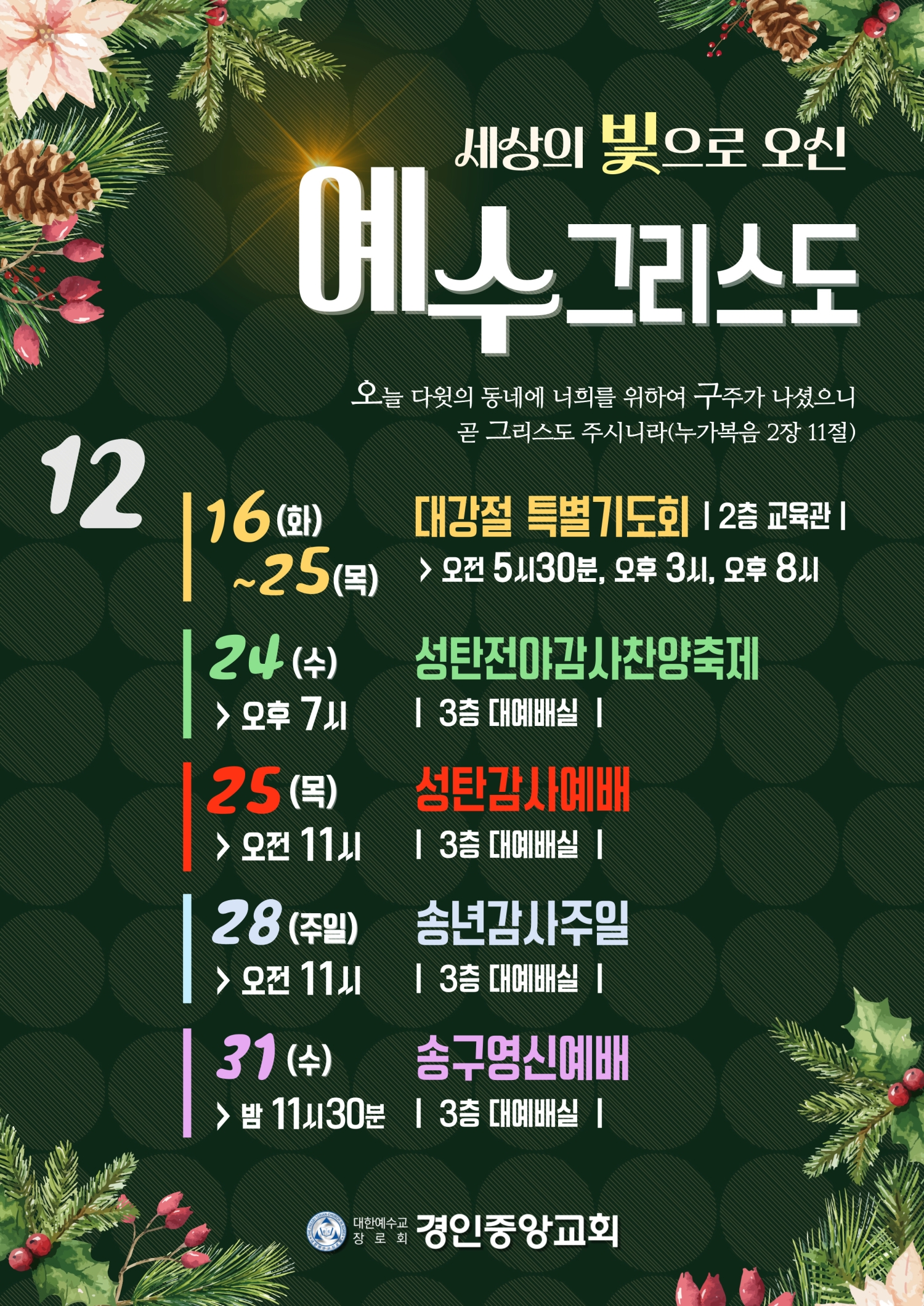 예배안내|2025 대강절 특별기도회 및 12월 예배안내
