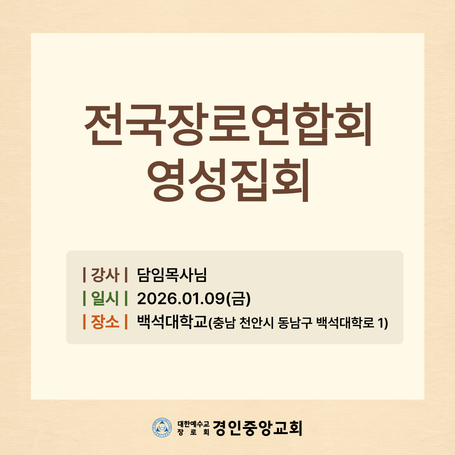 강사: 담임목사님 / 장소: 본교회(오전 11시)