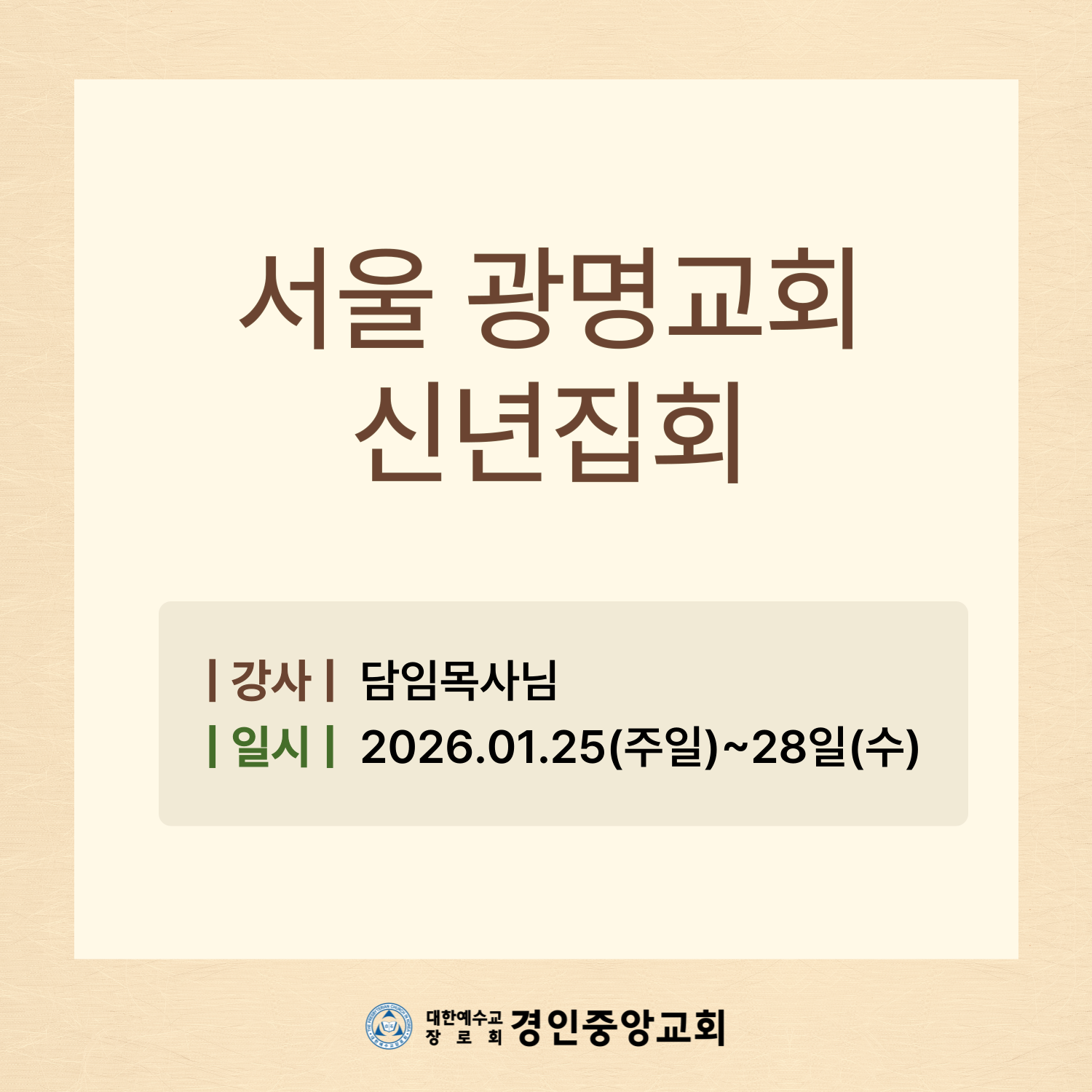 강사: 담임목사님 / 장소: 본교회(오전 11시)